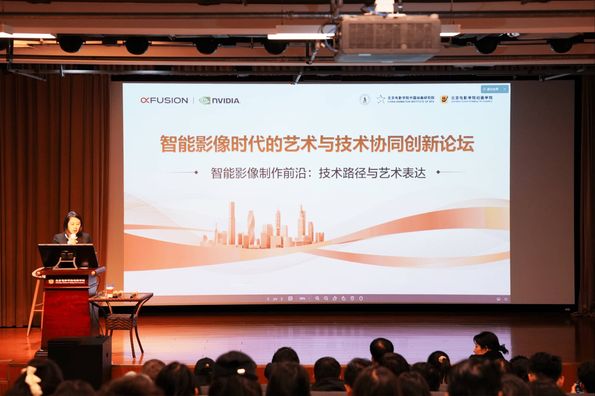主题讲座环节,北京电影学院动画学院院长马华在致辞中强调,前沿技术正深刻重塑动画教学与创作生态,学院将持续引进行业领先的智能算力与创作工具,深化产教协同育人。其后,超聚变高校合作总监赵成爱介绍FusionXpark™随身智能体开发平台,该平台以桌面级形态提供高性能算力支撑,有效降低智能影像创作门槛,为高校教学与企业创作提供稳定、易用的开发环境。