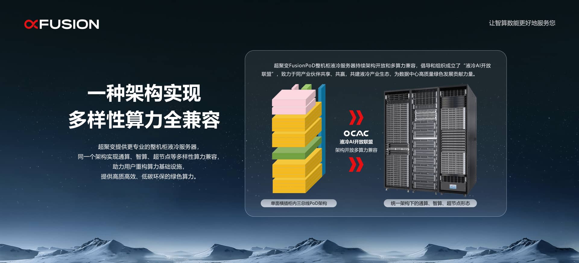 面向AIDC时代,超聚变将持续坚持“多元算力兼容、开放架构创新”技术路线,与产业生态伙伴和行业客户携手,加速算力基础设施重构与升级,推动AI在更多行业与场景中落地,让智算数能更好地服务您!
