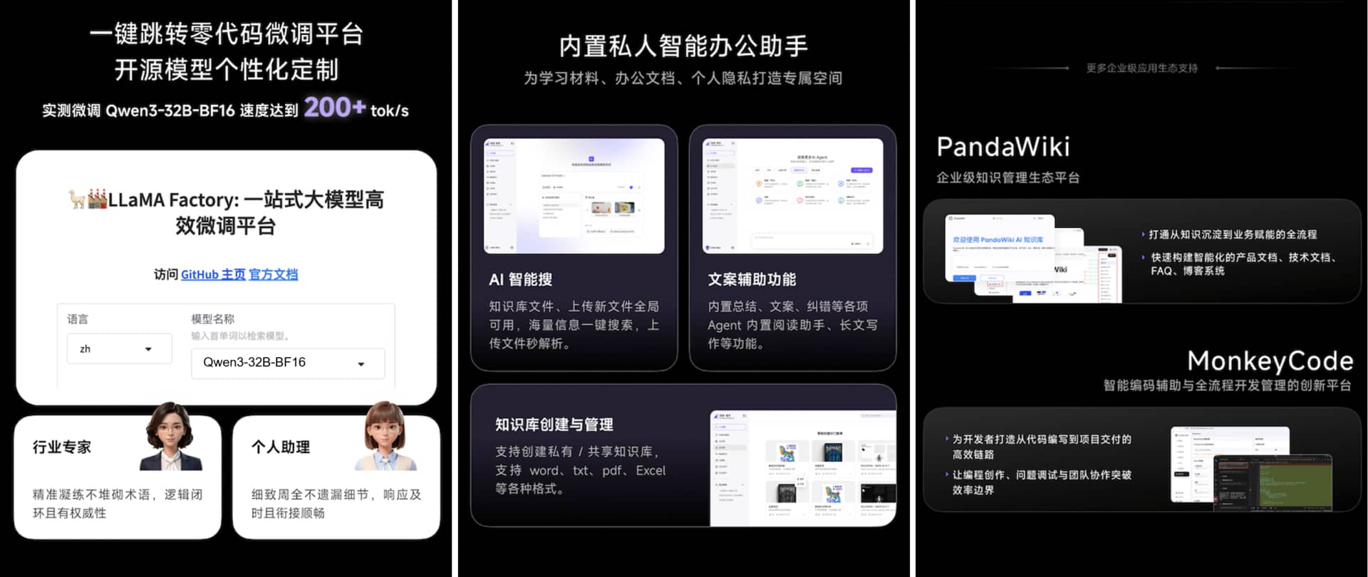 ● PandaWiki知识库系统与MonkeyCode编程助手覆盖从内容创作到研发协作的全链路,一站式满足从创意构思到产品落地的全流程需求。
