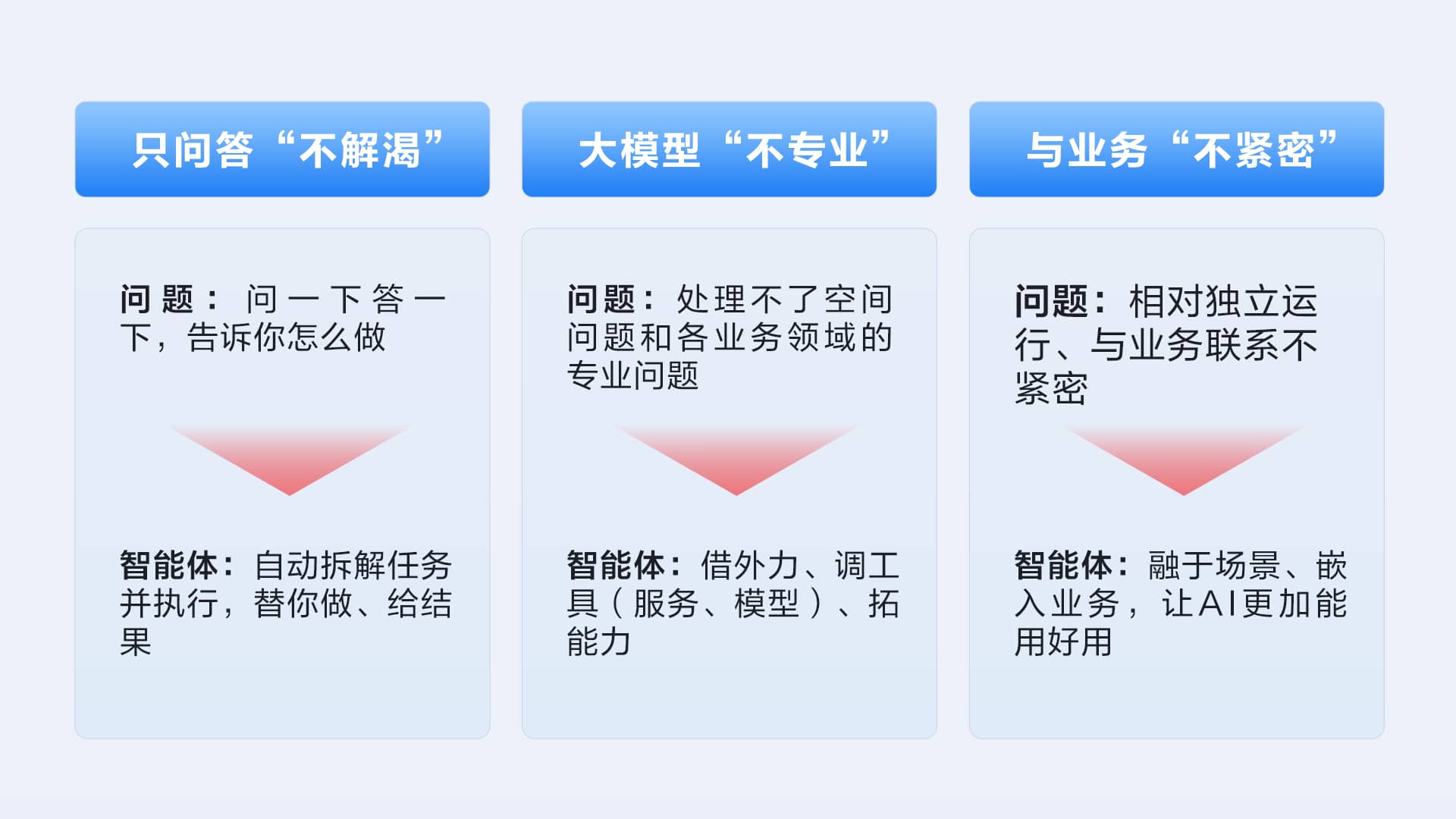 ● 内置三类空间智能体:知识问答式智能体高精度知识检索问答,工作流式智能体流程化自动执行任务,自主规划式智能体复杂任务自主规划与执行。相对于通用大模型,更精准、更丰富、更专业;