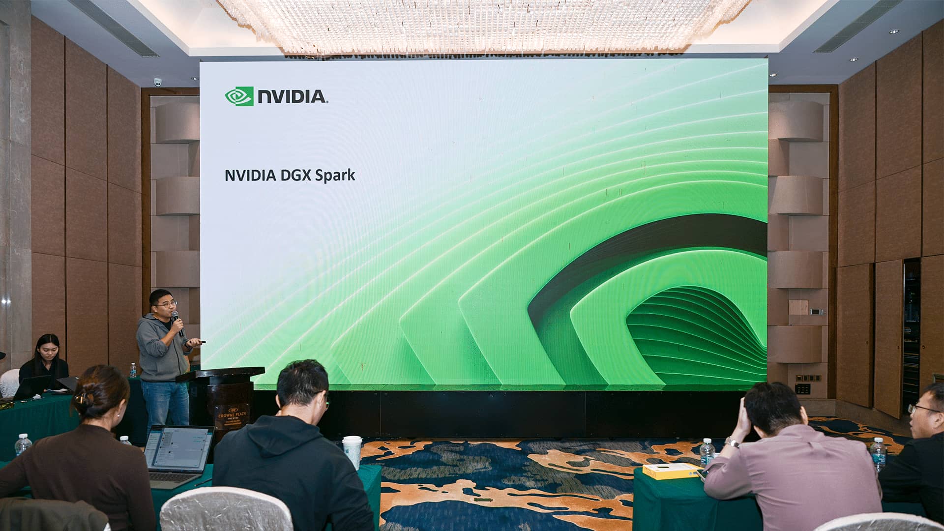 在备受期待的FusionXpark™真机体验环节,超聚变FusionOne AI解决方案架构师陈琪与飞致云南区售前总监徐松通过现场真机演示,直观展现了FusionXpark™的操作流程、功能特性与运行效果。现场来宾踊跃参与互动,近距离感受产品的便捷性与强大性能,围绕技术细节、应用场景、合作模式等问题展开深入交流。